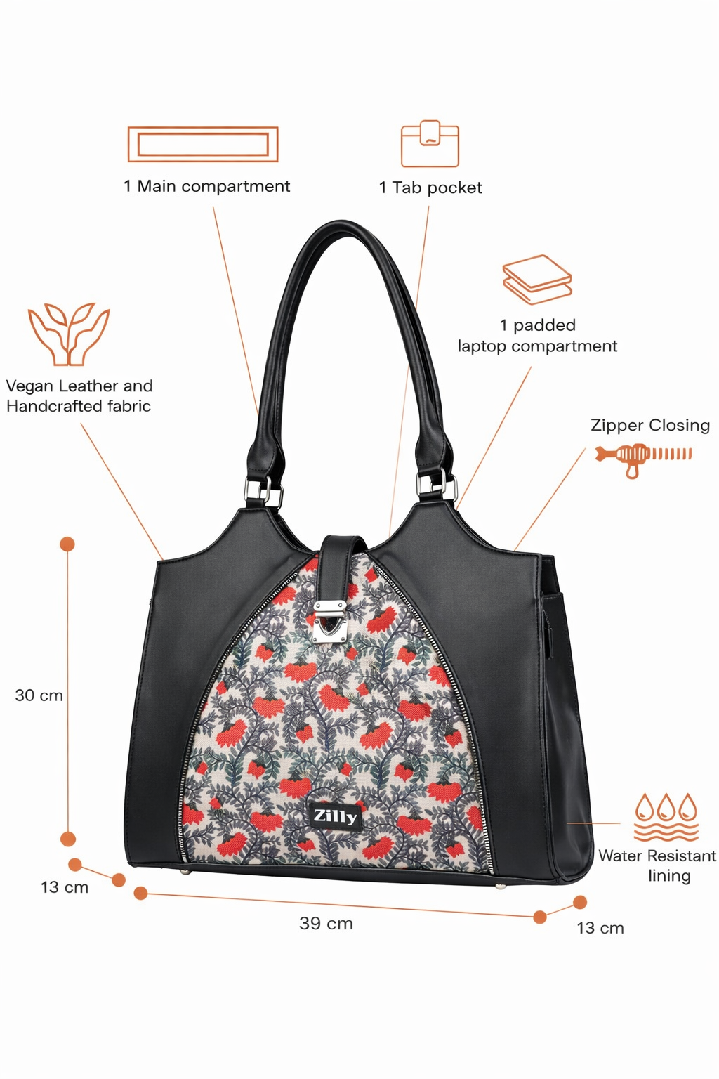 Zilly Vana Carryall laptop bag | Red kurinji Bloom pattern